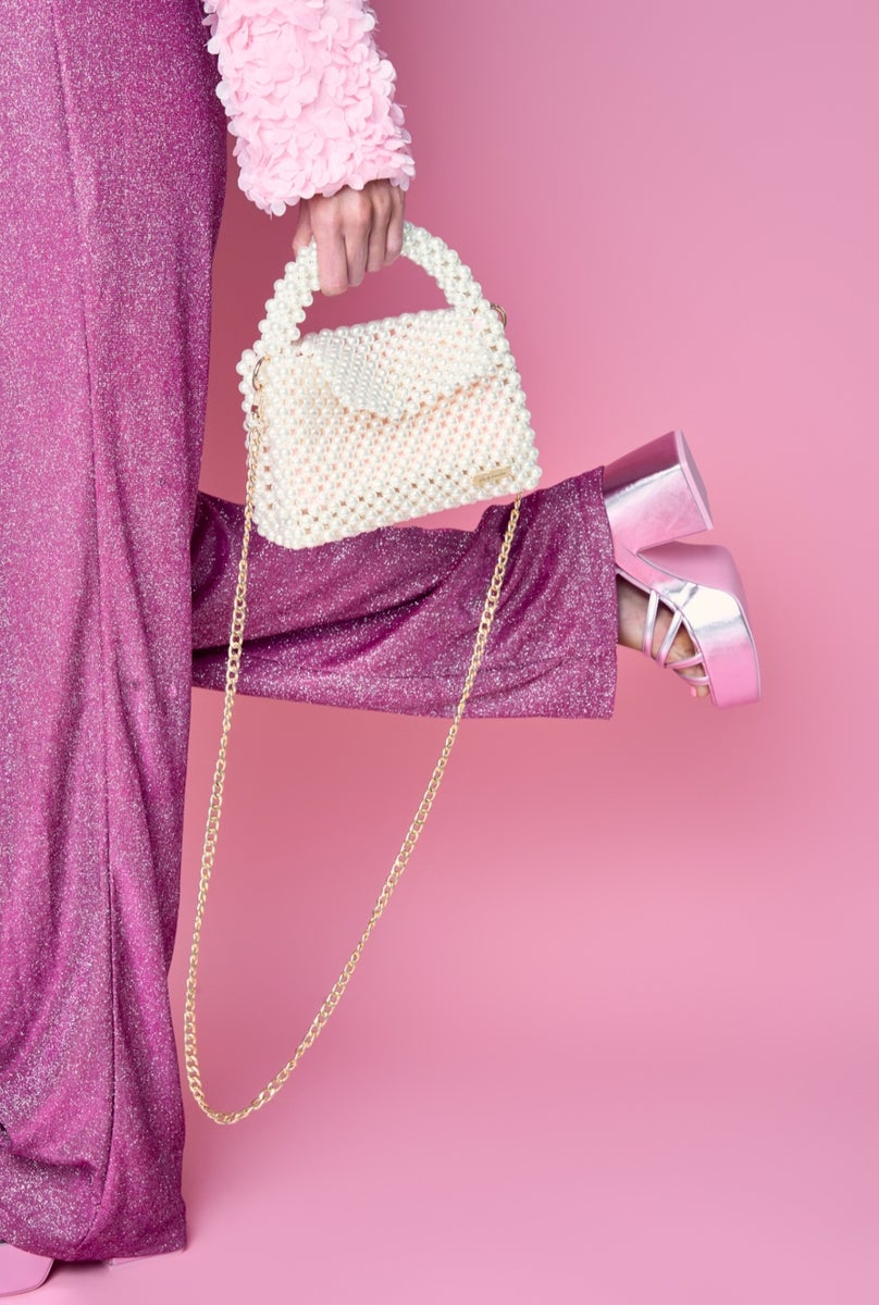 GLOSS bag (valkoiset helmet, vaaleanpunainen sisäkangas)