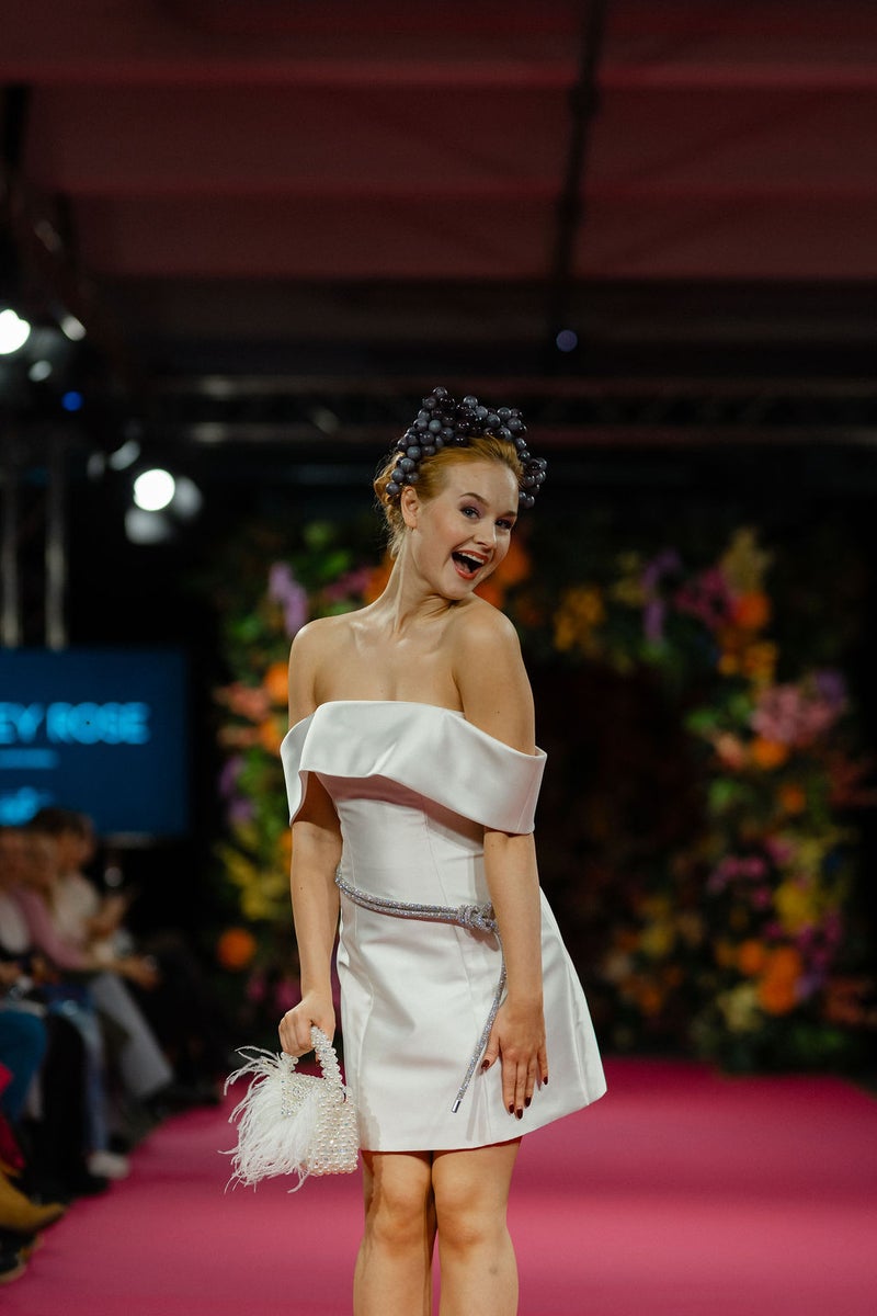GLOSS bag sulkalaukku HOPEA (valkoiset helmet&kristallit, valkonen sisäkangas)