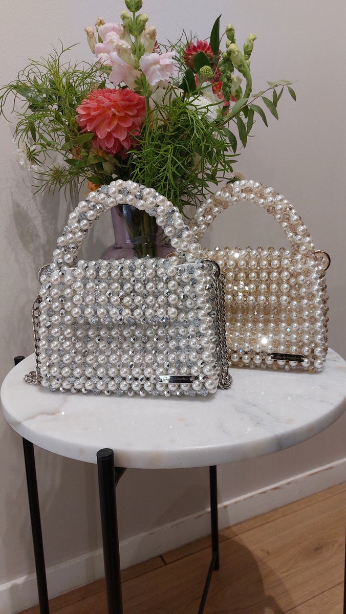 GLOSS bag (valkoiset helmet, beiget kristallit)